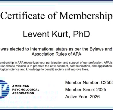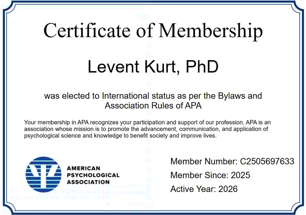 Psikoloji bilimiyle ilgili en saygın meslek kuruluşlarından biri olan Amerikan Psikoloji Derneği'nin (APA) üyeliğine kabul edildim.