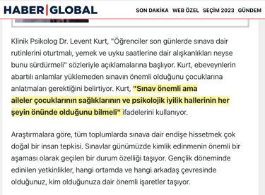 Haber Global için Liselere Giriş Sınavına doğru sınav kaygısını gençlerin, eğitimcilerin ve ailelerin nasıl ele alması gerektiğini değerlendirdim.