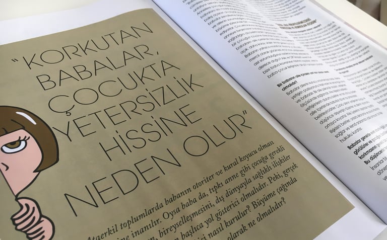 Bebeğim ve Biz Dergisi Babalar Günü'ne Özel Haziran Sayısında "Korkutan Babalar Çocukta Yetersizlik Hissine Neden Olur" başlıklı bir yazı kaleme aldım.